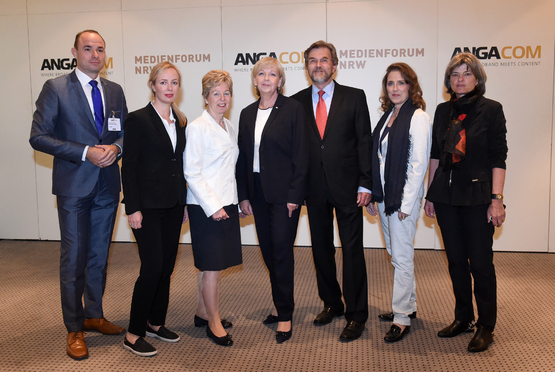 Zuvor hatten Thomas Braun, Präsident des Verband Deutscher Kabelnetzbetreiber (ANGA), und Petra Müller, Geschäftsführerin der Film- und Medienstiftung NRW, die Besucher im Congress Centrum Ost der Koelnmesse begrüßt.