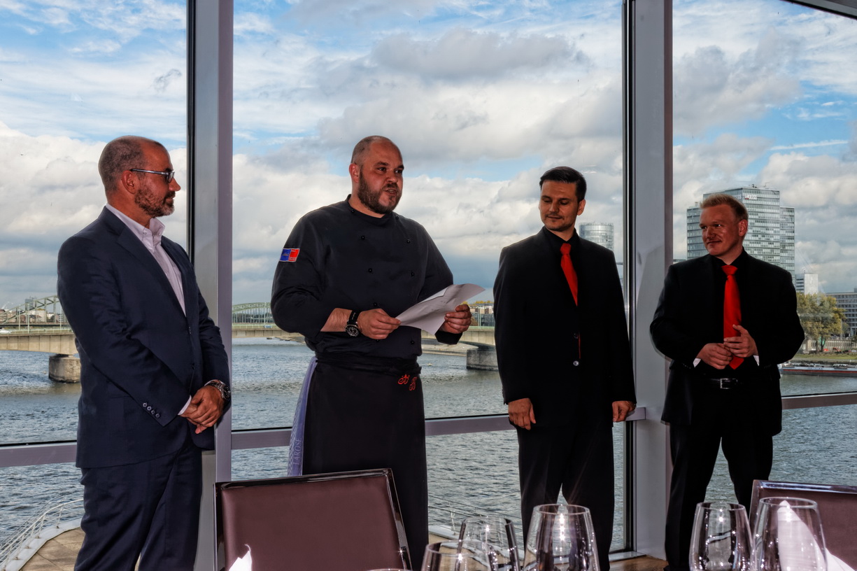 Einen zauberhaften Auftakt erleben die Gäste beim Glühweinempfang auf dem maritimen Hafenweihnachtsmarkt am Malakoff-Turm. Zauberhaft geht es auch weiter - die Kulisse, das Restaurant des Schokoladenmuseums, bietet einen atemberaubenden Blick über den leicht illuminierten Rhein.