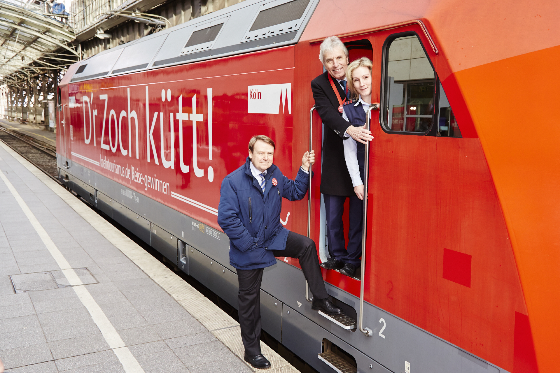 Ab Februar sorgen zwei besondere Loks für Aufsehen bei deutschen Bahnreisenden: Zwei durch KölnTourismus gebrandete IC-Loks in dem typischen Rot, mit dem selbstbewussten Spruch „D’r Zoch kütt“ (und bringt Dich nach Köln) werden ab sofort für Bahnreisen nach Köln werben. Das Branding wird komplettiert durch einen QR-Code und die URL www.koelntourismus.de/reise-gewinnen, die auf ein groß angelegtes Gewinnspiel hinweisen, das den Kern einer aktuellen Marketingkampagne bildet.