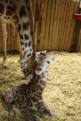 Mary ist eine sehr liebvolle und fürsorgliche Mutter, die sofort nach der Geburt den Kleinen von Kopf bis Fuß trocken schleckte und damit seinen Kreislauf in Schwung brachte. So konnte der jüngste Spross in der Giraffenfamilie bereits nach einer halben Stunde seinen ersten Aufstehversuch wagen, stand das erste Mal sicher um 22:13 Uhr und trank wenige Zeit später die für ihn wichtige Erstmilch. Der langbeinige Junge ist rund 1,70 Meter groß und 65 Kilogramm schwer.