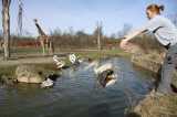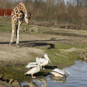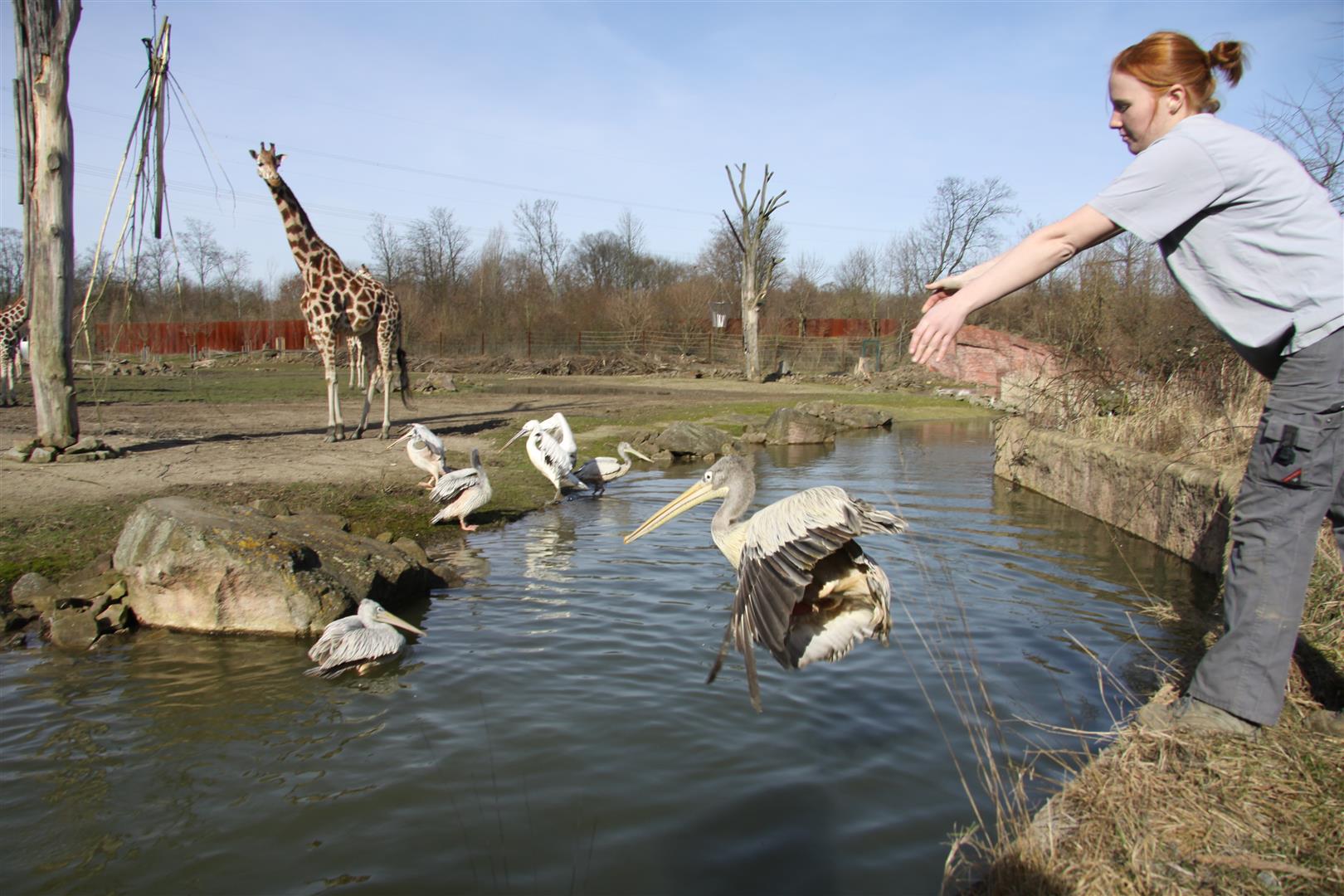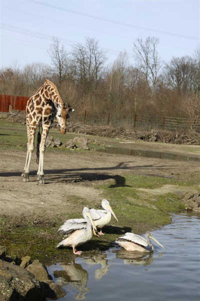 Die Giraffen haben die Ankunft der Pelikane mit neugierigen Blicken verfolgt. Die großen Wasservögel leben nun bis zum Winter auf der 5000 qm großen Landschaftsanlage in einer Artengemeinschaft mit Antilopen, Hornraben und den langhalsigen Huftieren.