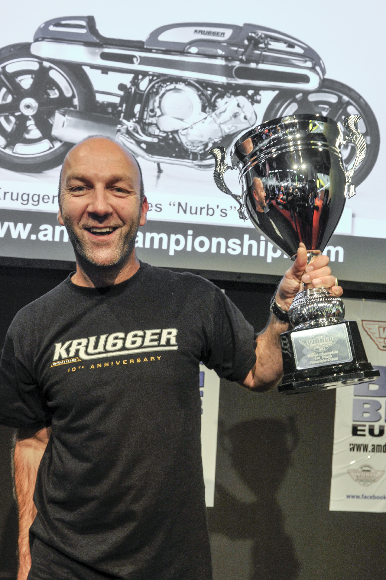 Krugger überzeugte die Jury mit seiner von Art Deco inspirierten ‚Nurb’s‘, die neben dem Sechszylindermotor der BMW K1600 auch die Elektronik des Bikes, einschließlich der Kraftstoffeinspritzung und ABS, enthält. Mit seinem zweiten Titelgewinn gehört Krugger zu einem exklusiven Kreis. Außer ihm gelang es bis dato nur dem Kanadier Roger Goldammer, den Weltmeistertitel mehrfach für sich zu verbuchen. Während Krugger mit state-of-the-art Technologie arbeitete, war der Ansatz des zweitplatzierten Veikko Sikiö vollkommen entgegengesetzt: Er kreierte im Gießverfahren den 800er-V-Twin-Motor, Vergaser und viele weitere Teile für sein Bike ‚WSA‘ und baute es fast vollständig von Grund auf neu. Auch der drittplatzierte North Coast Custom wählte einen ungewöhnlichen Motor: das Bike ‚Abarth‘ wurde um den Motor eines Fiat 500 gebaut, mit einem einzigartigen Front-End und einem verstellbaren Span.