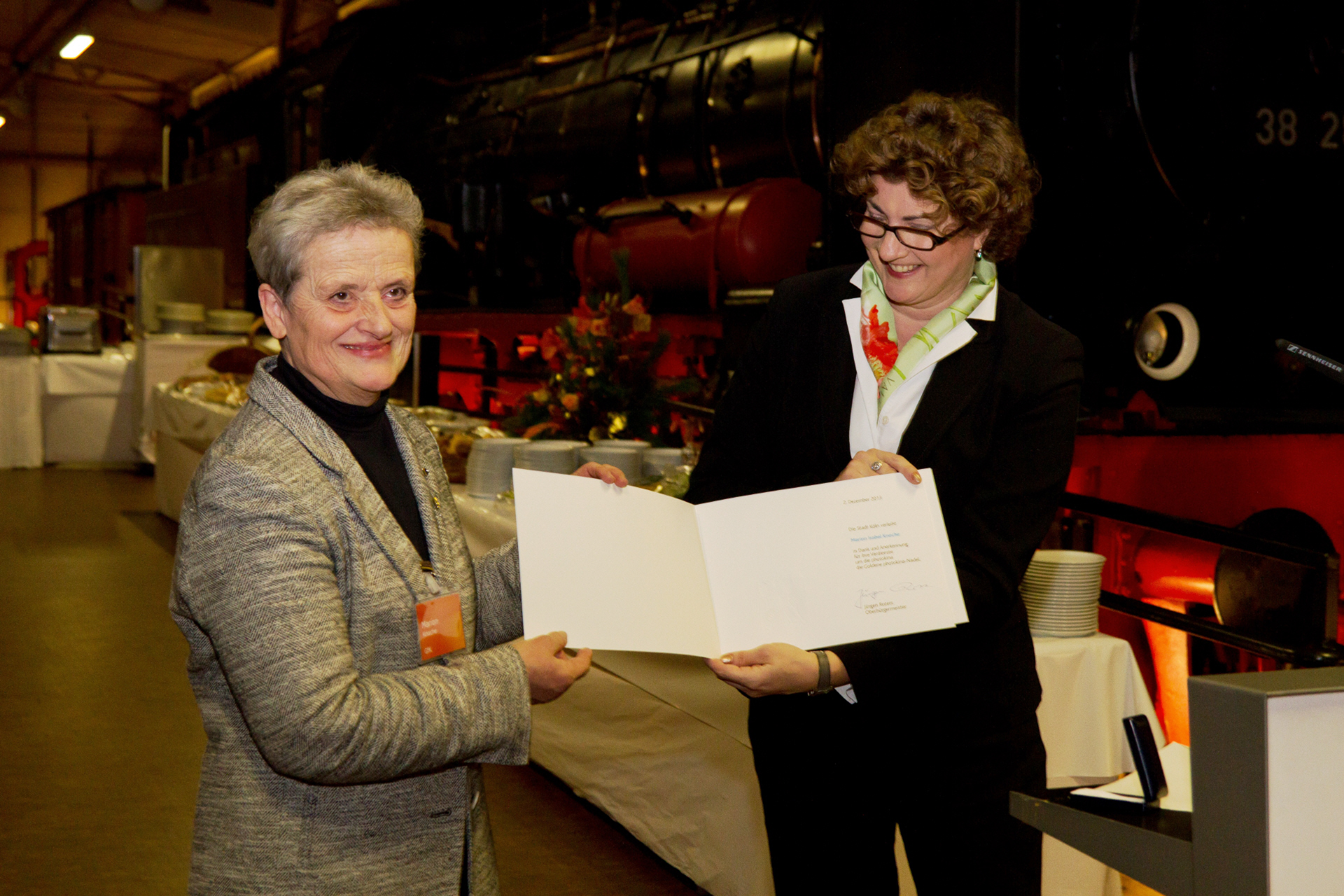 Hamma lobte in ihrer Laudatio das besondere Engagement von Marion Knoche für die Imaging-Branche. Sie sei wie kaum sonst jemand in der Lage, die Daten zum Markt bis ins kleinste Detail darzustellen und zu analysieren. Diese Fähigkeit habe dazu beigetragen, dass Sie sich in einer von Männern dominierten Branche nicht nur bis heute behauptet, sondern auch jede Menge Respekt verdient habe. Darüber hinaus sei es in einem nicht unerheblichen Maß ihr Verdienst, das die GfK Market-Briefings auf der photokina zu den TOP-Programmpunkten jeder Messe zählen. Sie habe damit der Messe und der Stadt einen großen Dienst erwiesen und sich immer wieder für den photokina-Standort Köln eingesetzt.