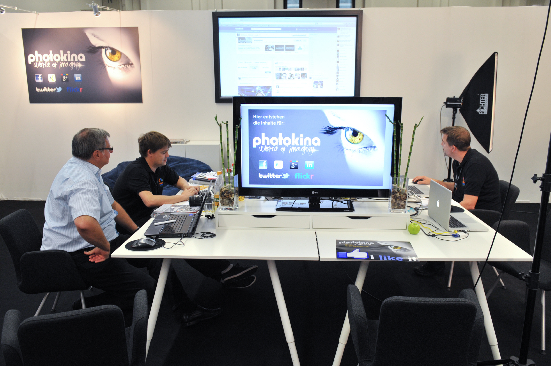 Sie ist die zentrale Anlaufstelle für alle, die sich gerne mit anderen über ihr Hobby austauschen: Die Sonderfläche photokina communities in der Halle 9. Getreu dem Motto "Fotografieren ist dann am schönsten, wenn man die Bilder mit jemandem teilen kann" führt die photokina auf dieser Sonderfläche sowohl reale als auch virtuelle Gemeinschaften zusammen. Unter dem Dach von photokina communities präsentierten sich soziale Netzwerke, Fotofestivals, Verbände sowie Verlagshäuser und bieten dem photokina Besucher einen Treffpunkt mit vielen Highlights auf und neben der großen Bühne.