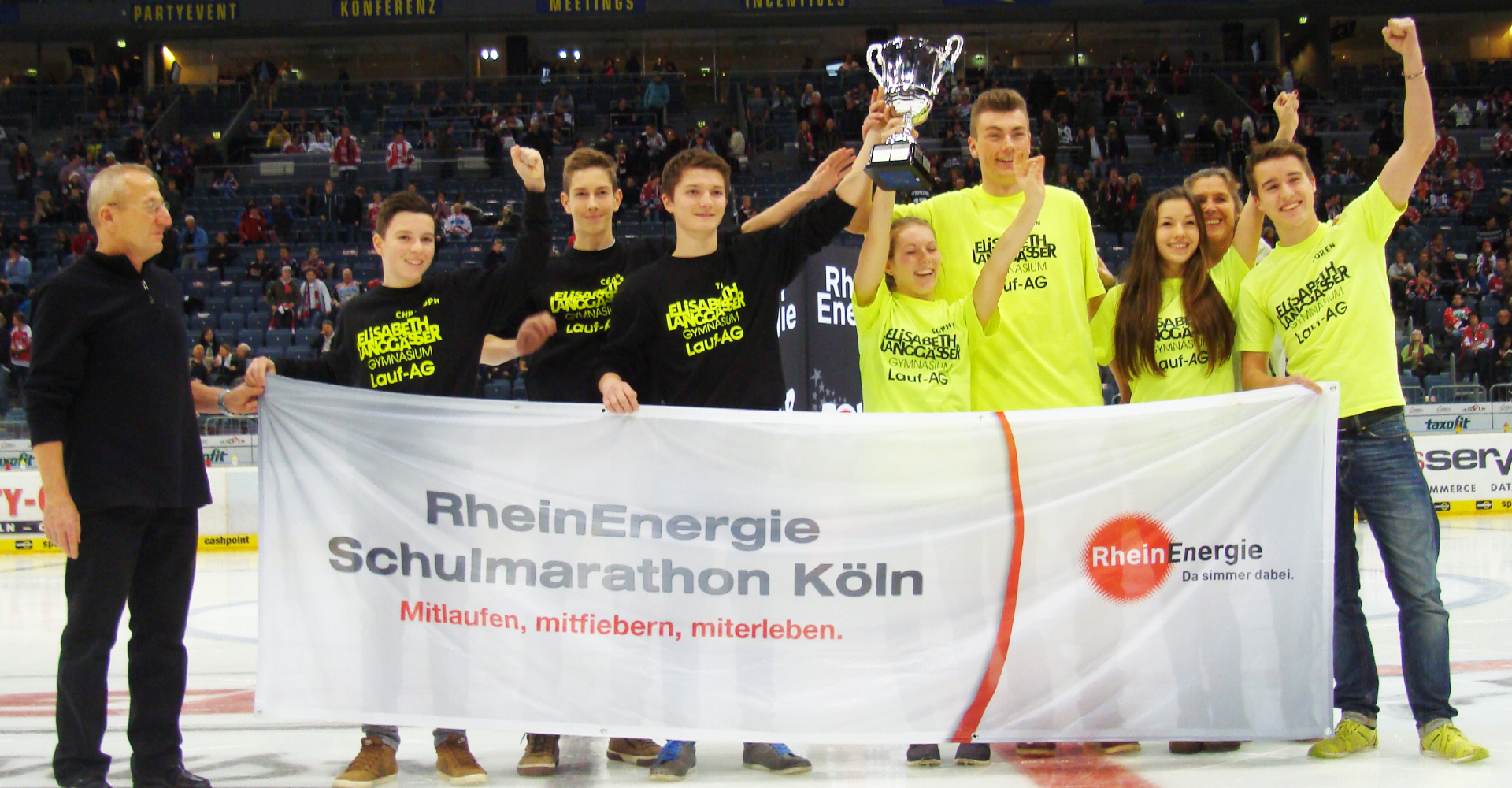 Die schnellsten Staffel kam vom Elisabeth Langgässer Gymnasium aus Alzey und siegte mit einer Zeit von 02:52:28 Stunden. Ein ganz besonderes Highlight war die Überreichung des Wanderpokals an die Sieger auf dem Eis der Arena in der Drittelpause des Eishockeyspiels.